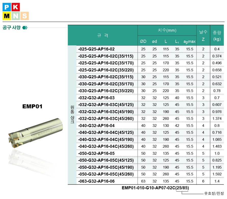 | 규격/단위 | EMP01 25~63파이 |