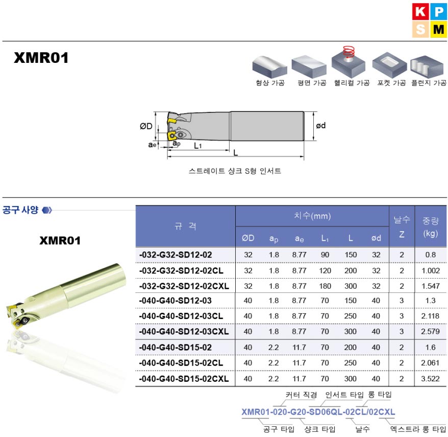 | 규격/단위 | XMR01 32~40파이 |