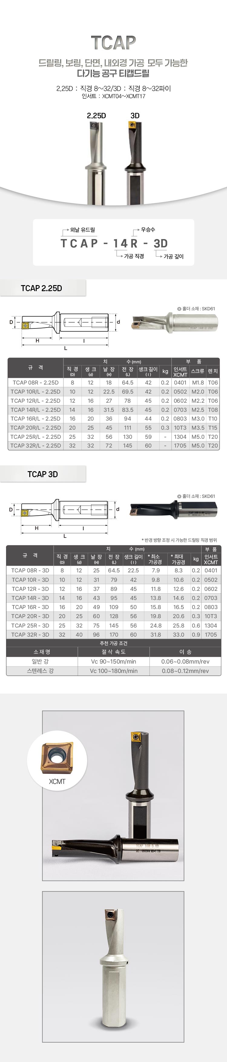 | 규격/단위 | TCAP 2.25D 8~32파이 |