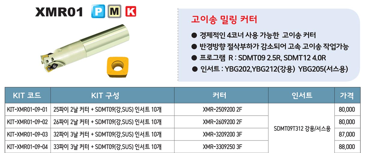| 규격/단위 | XMR+SDMT09 25~33파이 |