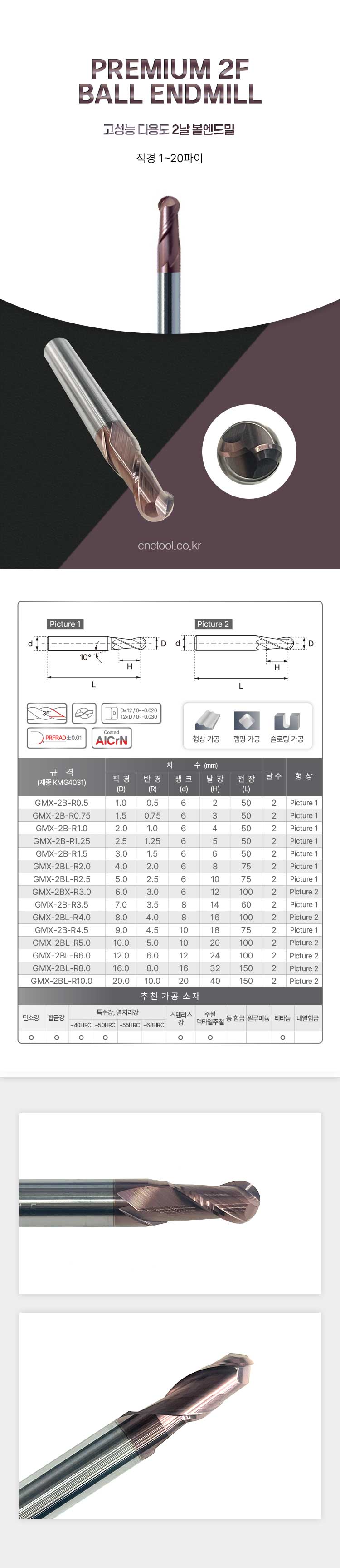 고성능 2날 볼엔드밀