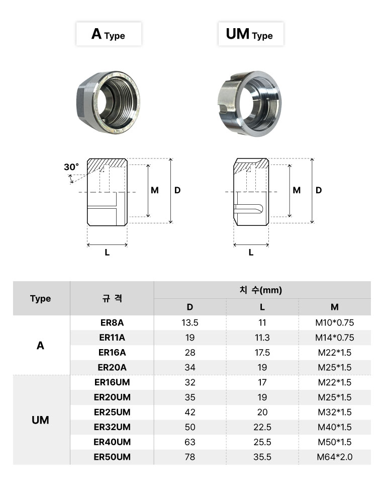 | 규격/단위 | ER16,20(A형) ER25,32(UM형) |