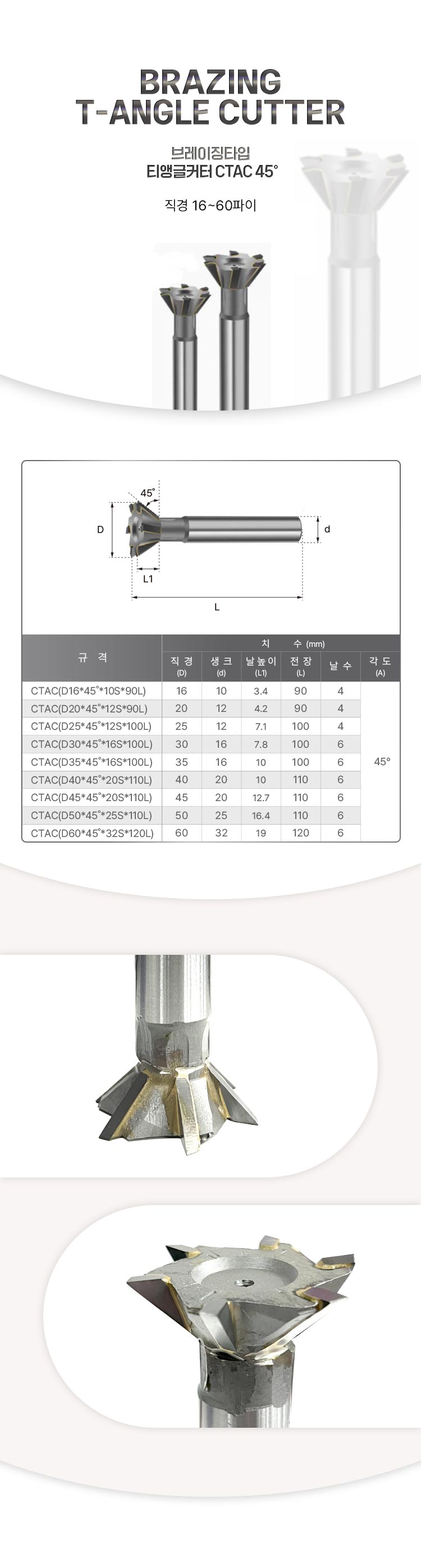 | 규격/단위 | CTAC 45˚ 16~60파이 |