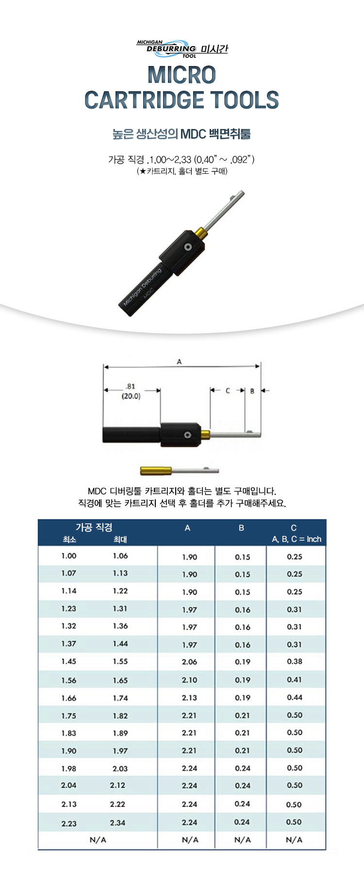 | 규격/단위 | MDC(1.0~2.34파이) |