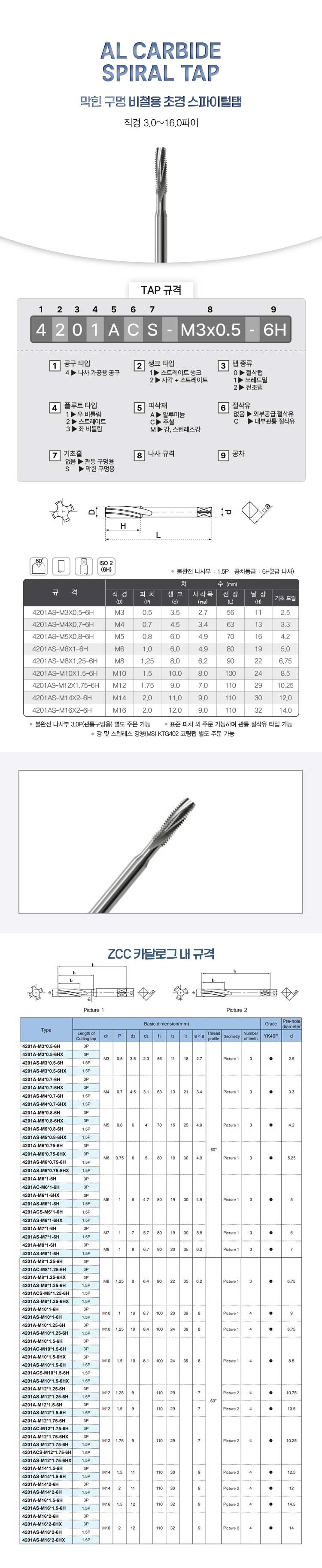 AL용 초경스파이럴탭